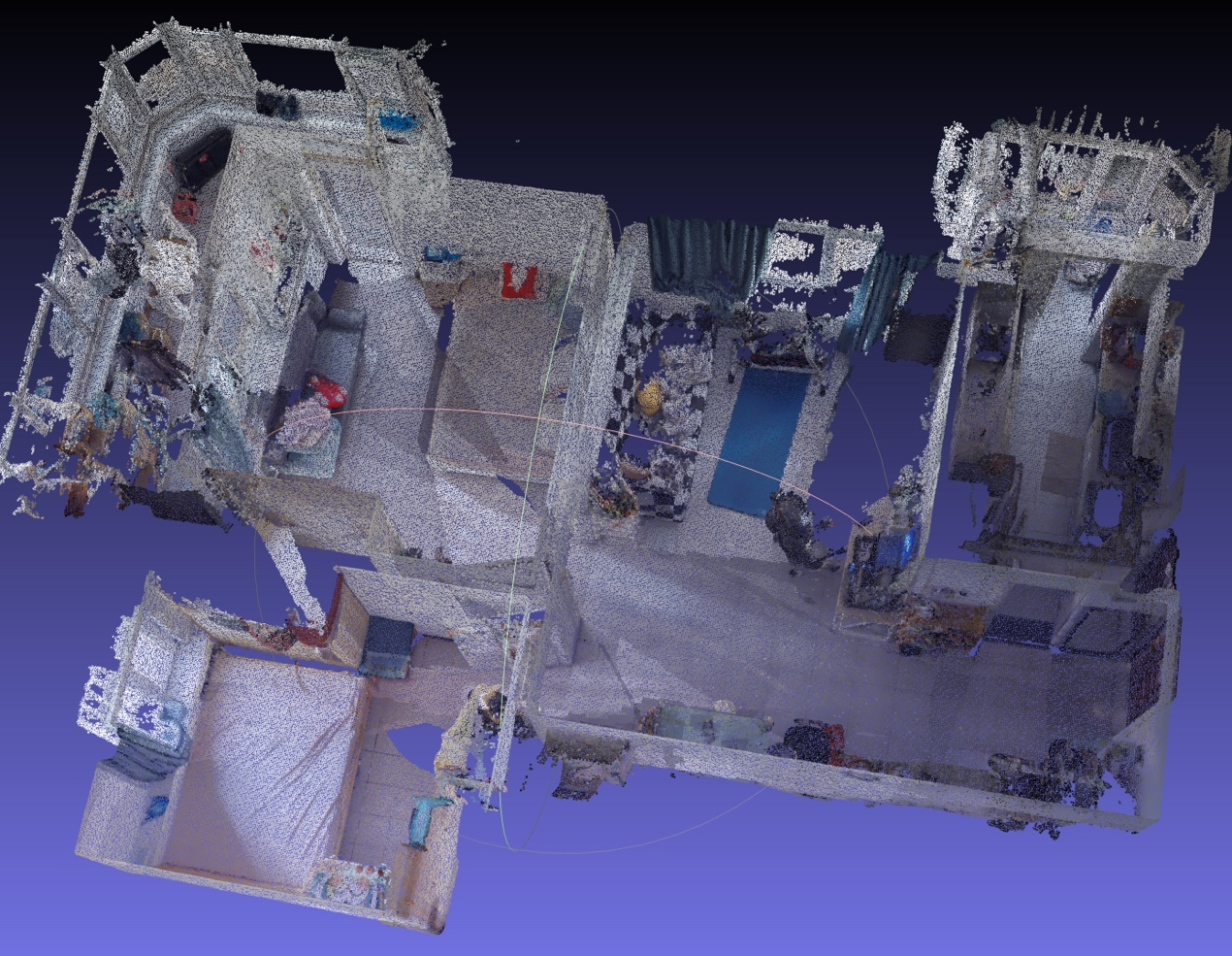三维点云(Point Cloud)是三维空间中离散点的集合,其中每一个点至少需要包含一组三维坐标(X, Y, Z),用于精确描述这个点在特定坐标系下的具体位置。当然,除了位置信息以外,每个点还可以附加有颜色、法线向量、强度值等其他更多的信息。基于多年在三维空间技术上的研发,众趣科技已经能够通过激光雷达、结构光深度相机,全景图像预测等多种技术手段,获得在某个点位环绕的三维点云数据。